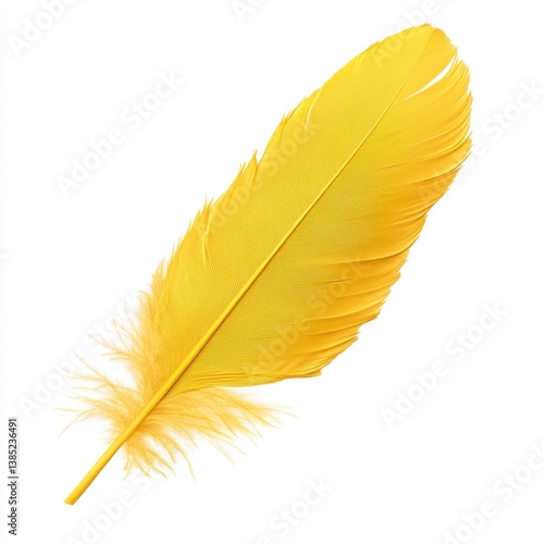 © Jeeranun, Fototapeta premium Vibrant Yellow Feather Isolated on White Background for Creative Use