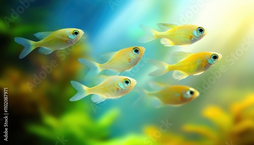 © Feri, Naklejka premium Vibrant Yellow Fish Schooling in Aquatic Paradise: A Stunning Underwater Scene