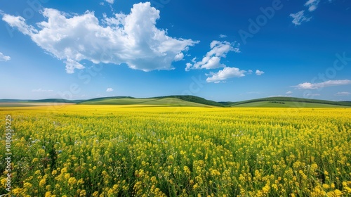 © S@photo, Fototapeta premium Vibrant Yellow Flower Field Under Blue Sky
