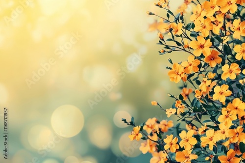 © donchanu, Obraz premium Vibrant Yellow Flowers Blooming in Springtime Garden Soft Bokeh Background
