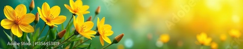 Fototapeta premium Vibrant yellow flowers in full bloom on a creative banner with copyspace, colorful, copyspace