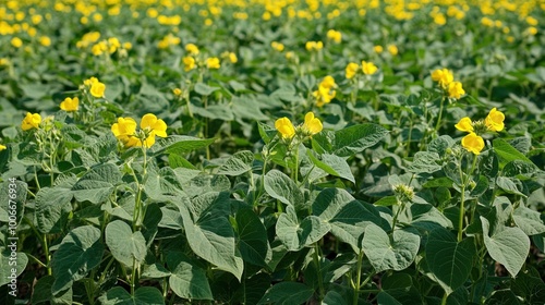 Obraz premium Vibrant Yellow Flowers in Lush Green Field