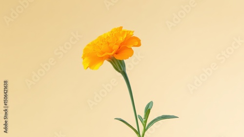 © Anca, Naklejka premium Vibrant Yellow Marigold: A sunny, cheerful marigold blooms against a soft yellow background, a celebration of nature's beauty.