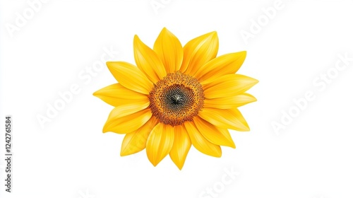 Naklejka premium Vibrant Yellow Sunflower Blossom Closeup on White