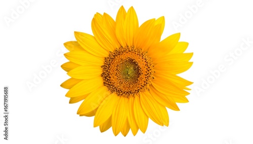 Fototapeta premium Vibrant yellow sunflower blossom, isolated on white background
