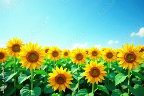 © napak, Fototapeta premium Vibrant Yellow Sunflowers Blooming Under a Sunny Sky in a Lush Green Field
