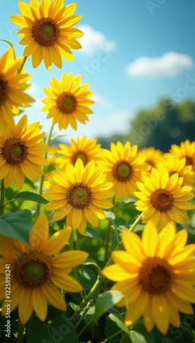 Fototapeta premium Vibrant yellow sunflowers fill frame, bright summer scene, golden, bloom