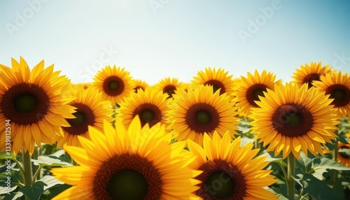Fototapeta premium Vibrant yellow sunflowers fill the frame, creating a sunny, cheerful...