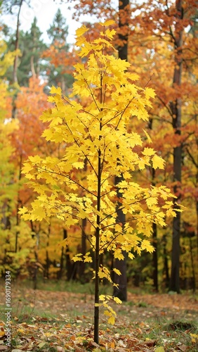 © Bintang, Naklejka premium Vibrant yellow tree amidst autumn foliage in forest