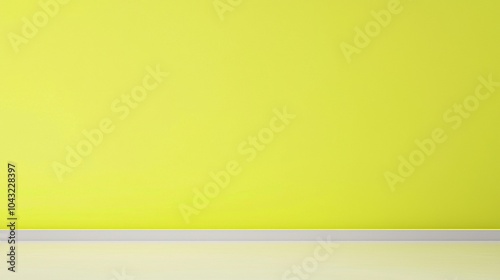 Obraz premium Vibrant yellow wall and reflective white floor create a clean, modern backdrop, perfect for creative projects. Bright colors add energy and optimism