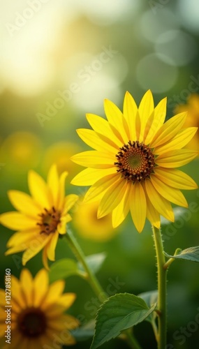 © dadtophoto, Fototapeta premium Vibrant yellow wild sunflowers, blurred background, yellow, bright