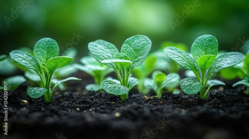 © AFFANYUDA, Naklejka premium Vibrant young plants sprout from rich soil