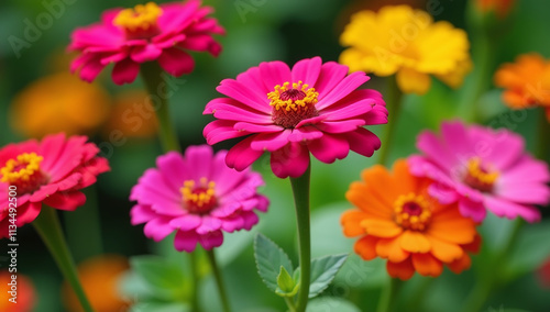 © Galeno, Obraz premium vibrant zinnias bloom summer gardens capturing colorful scenes camera
