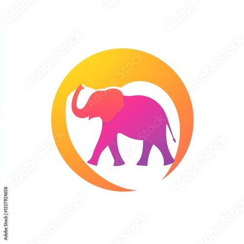 © Priyanut, Obraz premium VibrantGradientElephantInCircularDesignWalkingCalmlyPeaceful