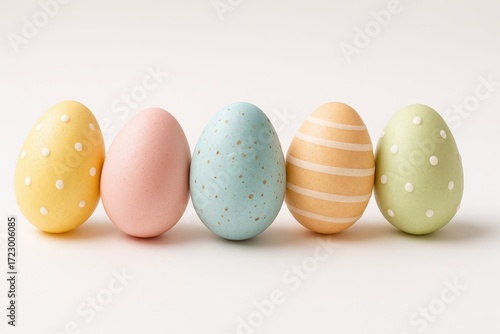 Fototapeta premium Vibrantly Colored Decorative Eggs Arranged Neatly Against a Soft Background,...