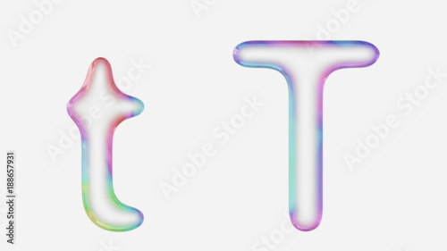 Fototapeta premium Vibrantly Colorful Upper and Lower Case t Rendered Using a Bubble