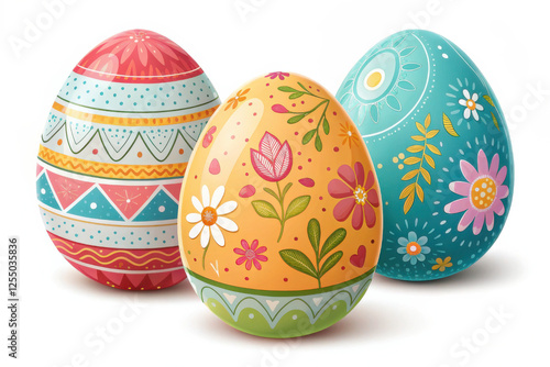 Fototapeta premium Vibrantly decorated Easter eggs isolated on a white background