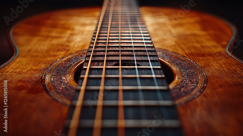 Fototapeta premium Vibrating guitar string captures the essence of harmonious sound in close-up...