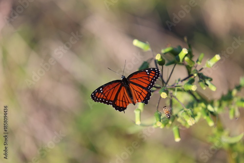 © StrawberryTide, Fototapeta premium Viceroy Butterfly and Bee on Tassel Flowers