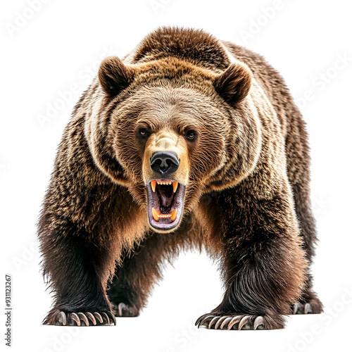 © vanilnilnilla, Obraz premium Vicious Grizzly Bear in Aggressive Action on Plain White Background Transparent PNG