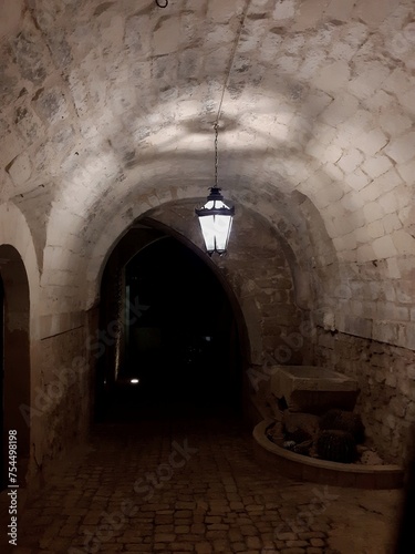 © Angelo Maria Trovato, Fototapeta premium Vicolo con tunnel ad arco a Scicli, di notte, con lampione acceso.