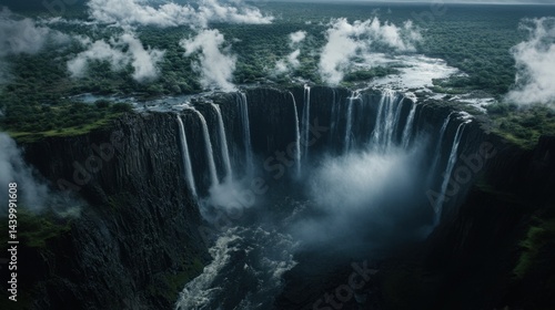 © Sawat, Fototapeta premium Victoria Falls cascading massive plumes of mist into lush African gorge