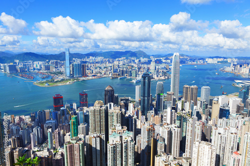 © leungchopan, Fototapeta premium Victoria Harbour, Hong Kong, shot from the Peak