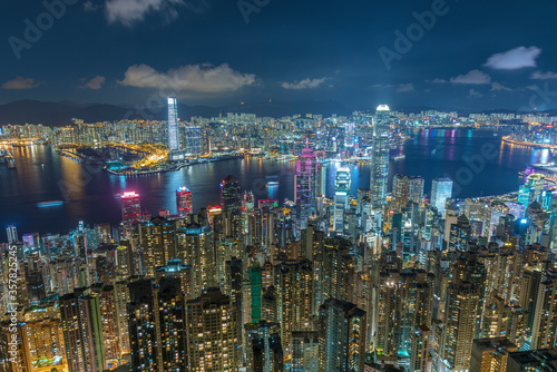 © leeyiutung, Obraz premium Victoria Harbour w Hongkongu w nocy