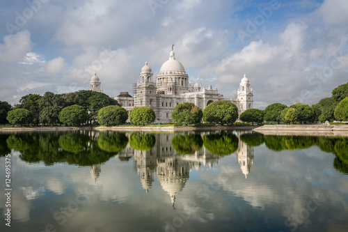 Fototapeta premium Victoria Memorial historic architectural monument with beautiful water...