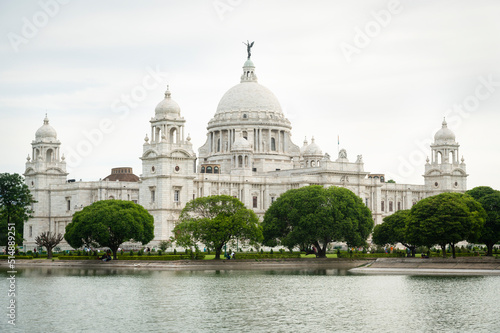 Obraz premium Victoria Memorial Kolkata at sunset with vibrant moody sky in the background. Victoria Memorial is a monument and museum built in the memory of Queen Victoria in 1921 at Kolkata in India. beautiful