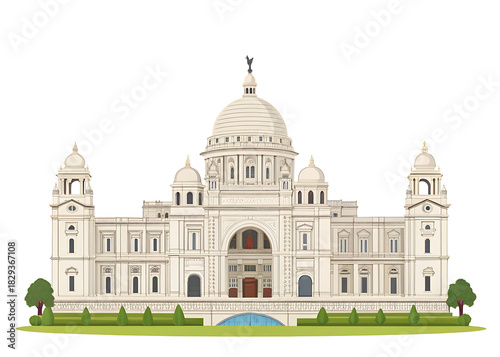© Panoy, Fototapeta premium Victoria Memorial Kolkata vector illustration, flat, clean white background