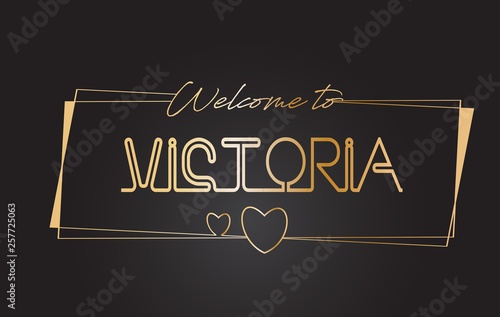 © ankreative, Obraz premium Victoria Welcome to Golden text Neon Lettering Typography Vector Illustration.