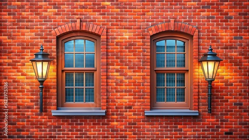 © chaowalit, Obraz premium Victorian Brick Wall with Lantern Windows