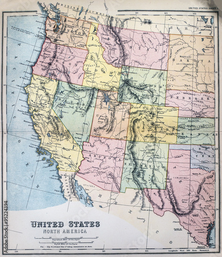 © mastamak, Fototapeta premium Victorian era map of Western States of USA