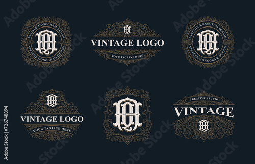 Obraz premium Victorian style monogram with initial AQ or QA. Templates set designs. Can be applied on stationery, invitations, signage, packaging, or even as a branding element and etc