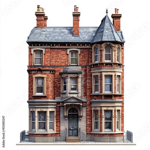 © Kopgz-41, Fototapeta premium Victorian Terrace House: Photorealistic 3D Model Isolated on White Background