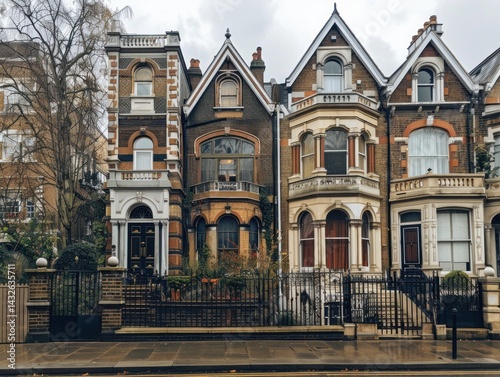© Fitriana, Obraz premium Victorian Townhouses on a Rainy Day