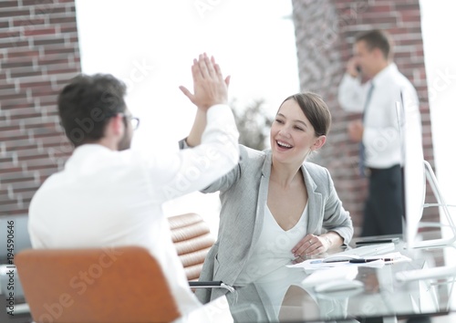 © ASDF, Fototapeta premium victorious business team celebrating your win