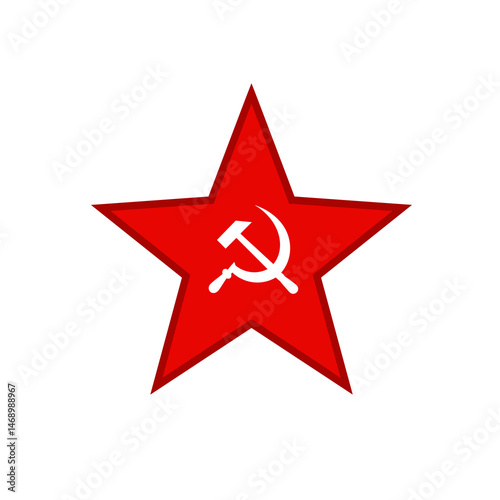 Obraz premium Victory Day, Red star icon with hammer and sickle emblem on a white background
