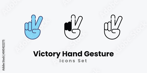 © Hexagon Designes, Fototapeta premium Victory Hand Gesture icons vector set stock illustration.