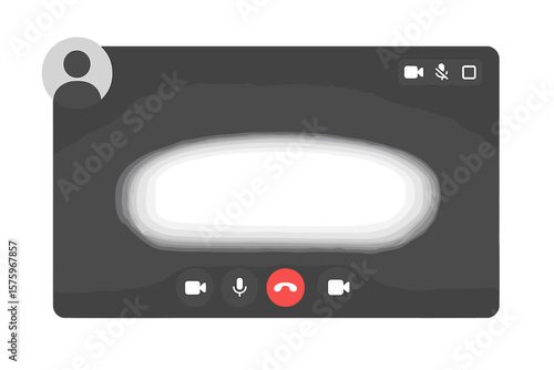 © Marie, Fototapeta premium Video Call Interface Vector Template. Online Meeting Screen. Virtual Conference UI. Webcam Chat Layout. Digital Communication. Remote Work. Transparent Background. Mute and Camera Icons. User Profile.