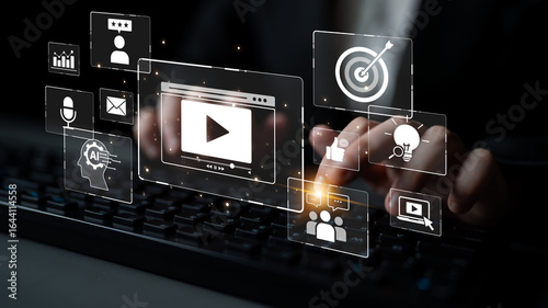 Fototapeta premium Video marketing helps businesses engage audiences with video marketing tools,...