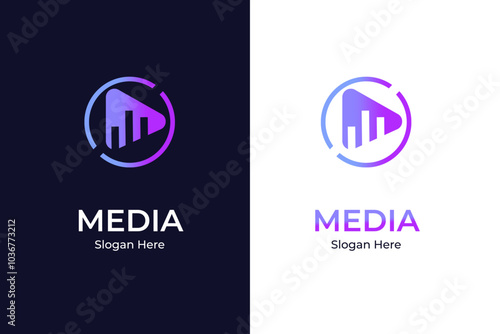 Fototapeta premium video play button, broadcast media, digital program, logo design vector