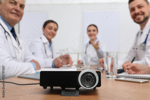 Fototapeta premium Video projector on table during medical conference