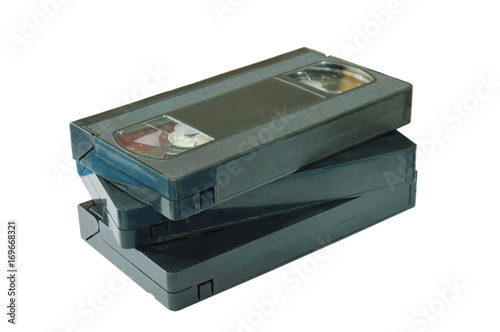 Obraz premium video tape recorder stacking on white background