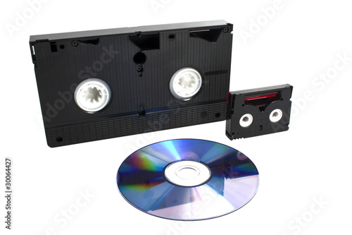 © yezep, Fototapeta premium videocassette and digital disc isolated on white background