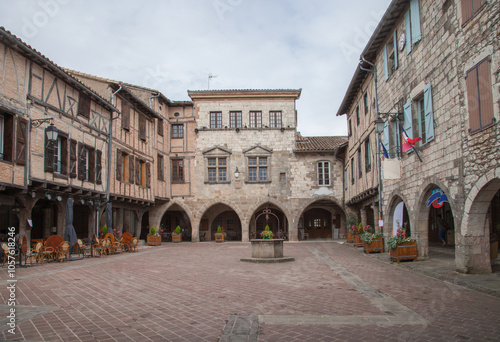 Obraz premium Vieille place médiévale du village de Castelnau de Montmirail (Tarn)