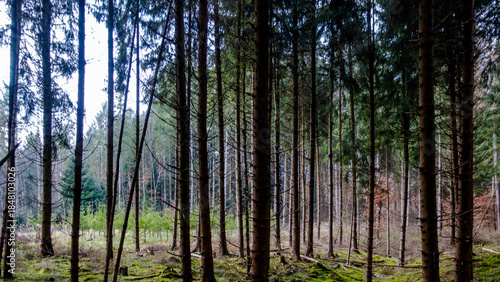 © focus finder, Fototapeta premium Viel Totholz in einem Fichtenwäldchen