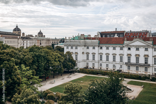 © Andrei Antipov, Fototapeta premium Vienna, Austria - August 6, 2024: Beautiful square and facades in the center of Vienna, in the museum quarter