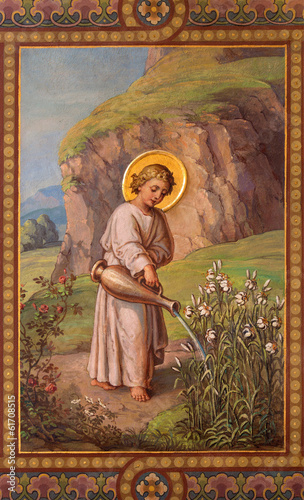 Fototapeta premium Vienna - Fresco of little Jesus as gardener in Carmelites church